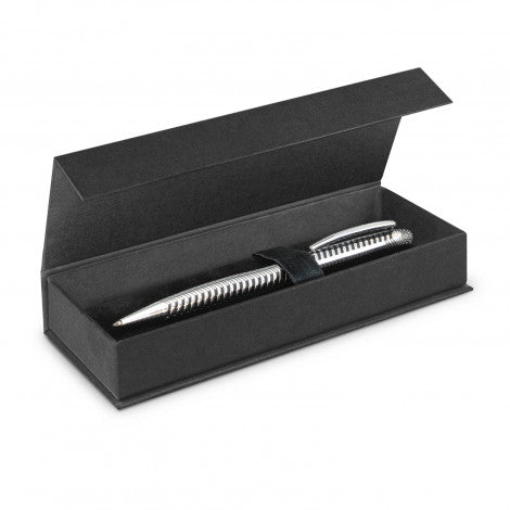 Refined twist-action brass ballpoint pen with a unique 3D etched pattern on the barrel and a smart electroplated finish. It has a black large volume refill with 4000 metres of German manufactured Dokumental ink and can be presented in an optional pen sleeve or a gift box.